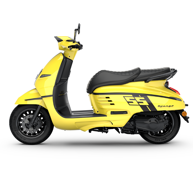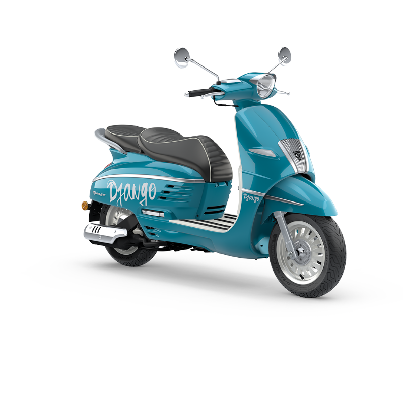 DESCUBRE EL SCOOTER NEO-RETRO CON UN ESTILO MUY FRANCÉS El Django Classic 125cc, con su espíritu retro heredado del mítico modelo Peugeot S55, encarna el encanto clásico y la elegancia francesa. Su motor eficiente y su diseño lo convierten en un aliado imprescindible de la movilidad urbana.