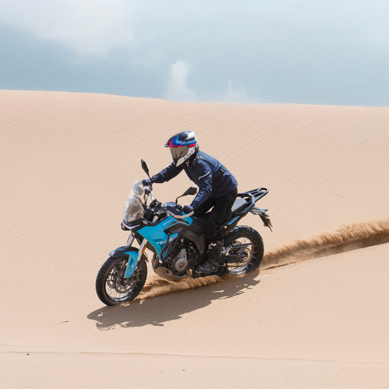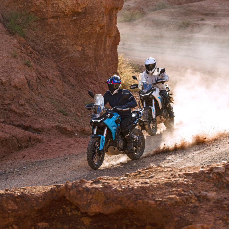 Diseñada para un control inspirado en los rallies, cuenta con una pantalla TFT vertical de 7 pulgadas con navegación GPS (Morbidelli Connect) y TPMS, además de un sistema de iluminación LED completo con DRL, proyectores duales y señales LED para una máxima visibilidad. Lista para la aventura desde fábrica, viene con una placa protectora, caballete central, protectores de manos y barras de protección, mientras que el ABS conmutable de Bosch, la suspensión de largo recorrido y los neumáticos Pirelli Tubeless (19«/17») garantizan el control en cualquier terreno. Desde las calles de la ciudad hasta los senderos más accidentados, la T502X está diseñada para ir más allá de lo cotidiano. Morbidelli T502X. Diseñada para llegar más lejos.