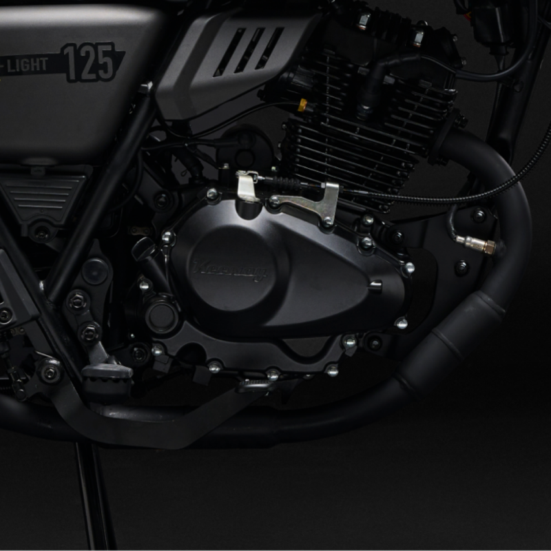 El motor es un monocilíndrico de 125 cc refrigerado por aire.